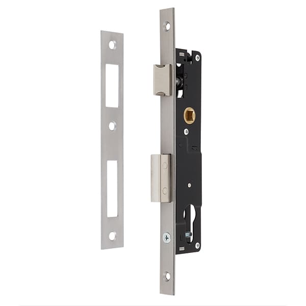 Замок SANTOS 726 встановлюється врізним методом на вхідні двері з металу, дерева та алюмінію в якості основного. За потреби його часто використовують і на хвіртках. Керується ручками і серцевиною стандарту EURO DIN. Вона в комплект не входить та докуповується окремо в залежності від ваших потреб. Замок оснащений одним прямокутним стальним ригелем. Його повний вихід складає 16 мм. Торцева планка виготовлена із нержавіючої сталі. Завдяки реверсивному язичку замок підходить як для ліво, так і право-сторонніх дверей.