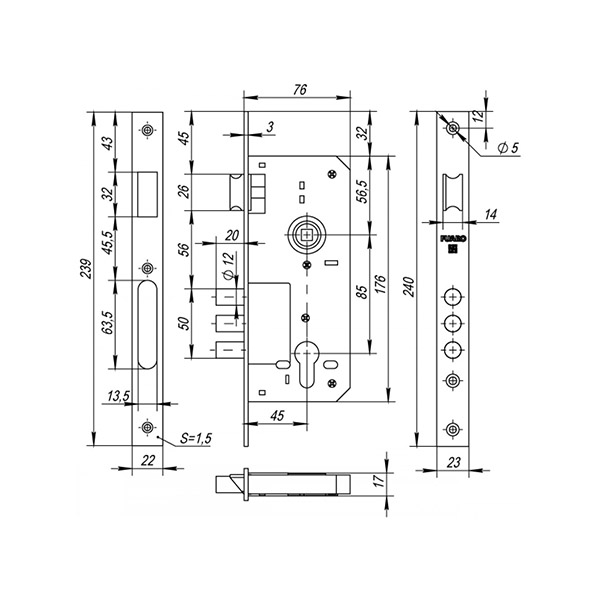 Фурнітура для дверей ТМ FUARO є прекрасною альтернативою більш відомих брендів. Дана модель - це 3-х ригельний основний врізний замок, який встановлюється на вхідні двері з металу і дерева. Повний вихід ригелів складає 20 мм. Керується ручками і серцевиною стандарту EURO DIN. Вона в комплект не входить та докуповується окремо в залежності від ваших потреб. Завдяки реверсивному язичку підходить як для ліво, так і право-сторонніх дверей.