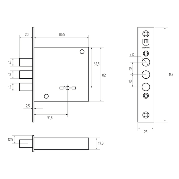 Механізм замка SHERLOCK 04.06-S (BS54мм) 5 ключів