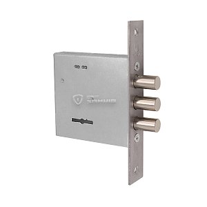 Закривання здійснюється 3-ма ригелями зі сталі діаметром 12 мм. Вони надійно фіксують двері, забезпечуючи достатній рівень безпеки. Повний вихід становить 20 мм. Даний замок ідеально підходить для встановлення в якості додаткового замка в металеві або дерев’яні двері квартир, будинків, гаражів чи комерційних приміщень. В даній версії в комплектації 5 ключів.