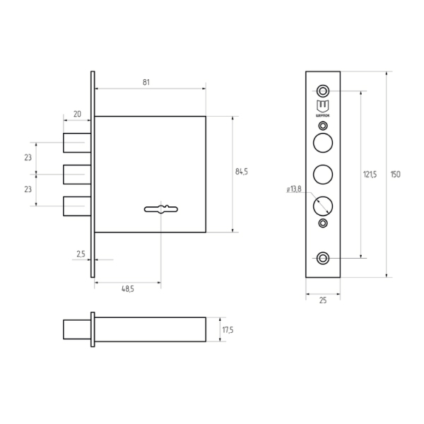 • Розміри замка –  81х84,5х17,5 мм.