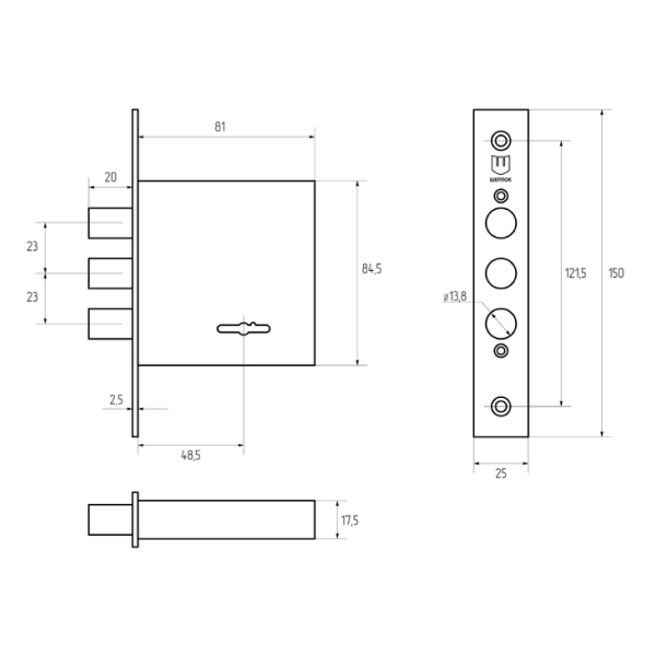 • Розміри замка –  81х84,5х17,5 мм.