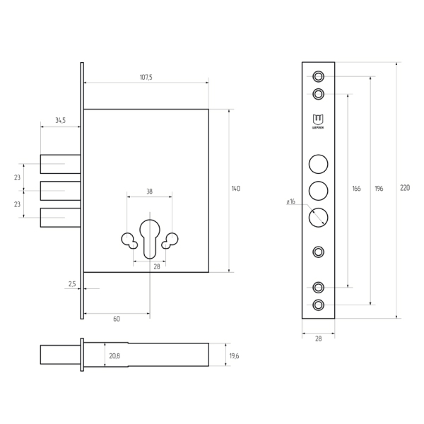 • Розміри замка – 107,5х140 мм.