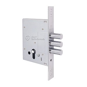 SHERLOCK 257 – це 3-х ригельний врізний замок, який встановлюється на металеві вхідні двері. Не має язичка, тому використовується в якості додаткового верхнього замка. Повний вихід ригелів діаметром 16 мм складає 34,5 мм.