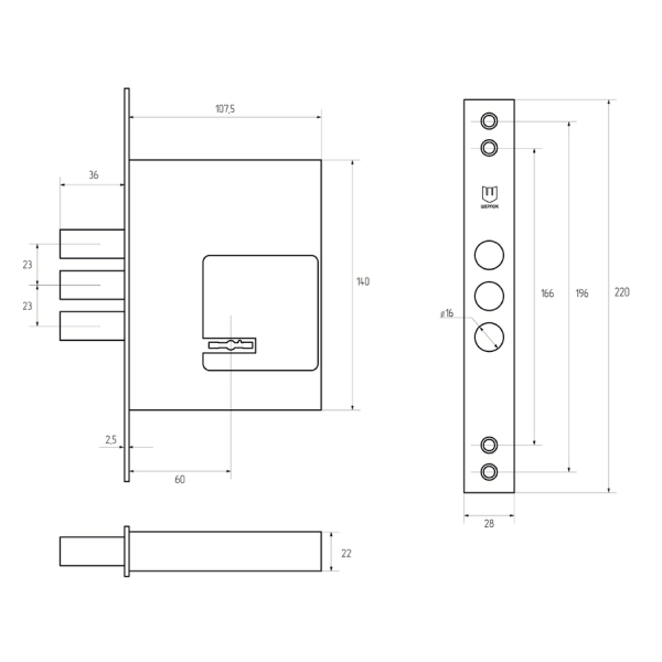 SHERLOCK 257L – це 3-х ригельний врізний замок, який встановлюється на металеві вхідні двері. Не має язичка, тому використовується в якості додаткового верхнього замка. Повний вихід ригелів діаметром 16 мм складає 36 мм.
