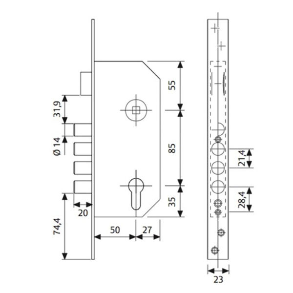 TESA R200B – це замок, який встановлюється врізним методом у вхідні двері з металу, пластику, металопластику та алюмінію. Використовується в якості основного замка. Керується лише серцевиною стандарту EURO DIN. Вона в комплект не входить та докуповується окремо в залежності від Ваших потреб. У відчиненому стані фіксується за допомогою язичка. Використовується із ручками-скобами або фіксованими ручками на планці чи розеті.