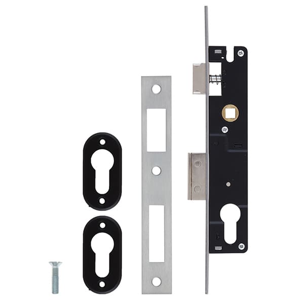 Замок SANTOS 726 встановлюється врізним методом на вхідні двері з металу, дерева та алюмінію в якості основного. За потреби його часто використовують і на хвіртках. Керується ручками і серцевиною стандарту EURO DIN. Вона в комплект не входить та докуповується окремо в залежності від ваших потреб. Замок оснащений одним прямокутним стальним ригелем. Його повний вихід складає 16 мм. Торцева планка виготовлена із нержавіючої сталі. Завдяки реверсивному язичку замок підходить як для ліво, так і право-сторонніх дверей.