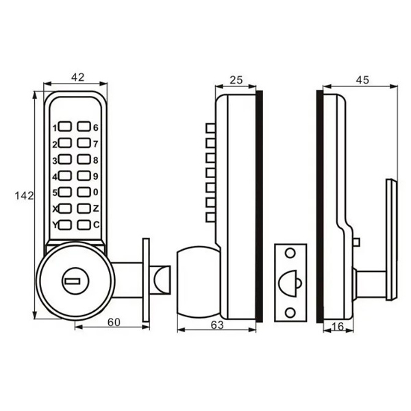 Комплект замка LOCKOD L140 (BS60мм) механічний кодовий