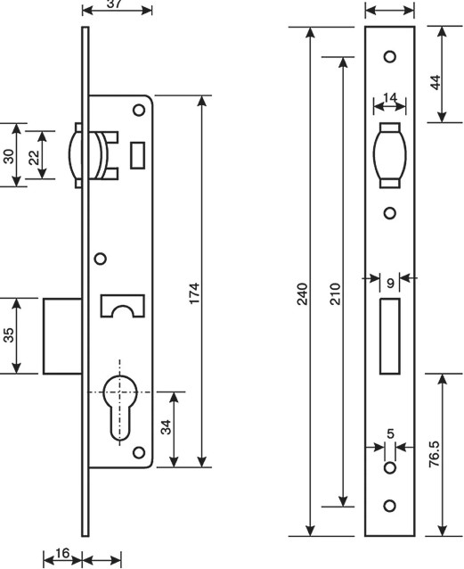 • Замок підходить для металевої труби глибиною 35мм і більше (напр. 40х40мм) при бексеті (25мм).