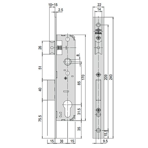Опис Механізм замка CISA 44661.30.0.20 язичок (BS30*85мм, 22 мм) нержавіюча сталь