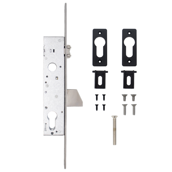 CISA 46230 – врізний замок, що призначений для вхідних розпашних дверей з алюмінію або сталі. Товщина корпусу становить лише 19 мм, що робить його зручним для установки у вузькі профілі. Тому його також можна встановлювати у хвіртках. Замок виконує функцію основного та керується циліндром стандарту EURO DIN (серцевина купується окремо).