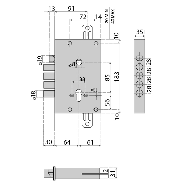 Механізм замка MOTTURA 52.771DM2856 (TSBM) (BS66*85мм) ключ 60мм