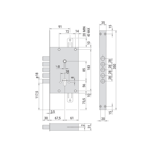 Механізм замка CISA 44661.30.0.20 язичок (BS30*85мм, 22 мм) нержавіюча сталь