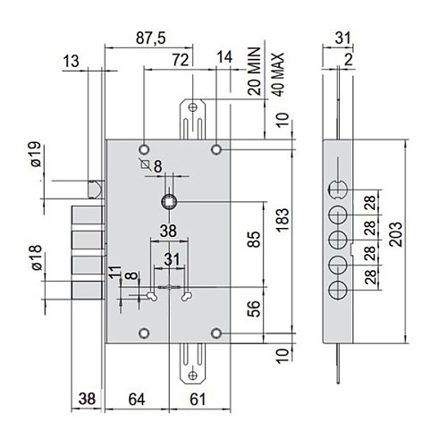 Замок є аналогом врізного механузму CISA 57685 ALPS, але без торцевої планки.