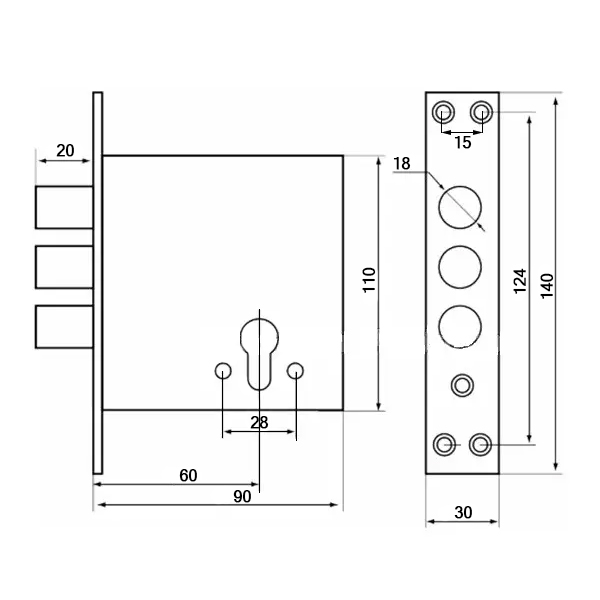 Опис Механізм замка Китай верхній 3 ригеля (BS60мм)