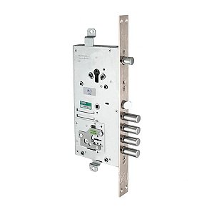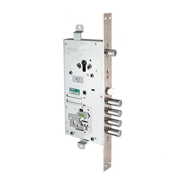 Замок від італійського виробника MOTTURA серії 54J – першокласне рішення для безпеки вхідних дверей приватних і комерційних приміщень. Корпус поєднує дві системи запирання – циліндрову і сувальдну. При закриванні на верхній циліндровий замок, отвір під сувальдний ключ перекривається спеціальною пластиною, перешкоджаючи злочинному відкриванню замка. Ключ має дві кульки в самому стрижні, що також виключає можливість відкриття замка відмичками. При втраті ключів дану модель можна легко перекодувати: верхній – замінити циліндр; нижній механізм – за допомогою нового комплекта сувальдних ключів MyKey. Механізм передбачає встановлення нажимної ручки.