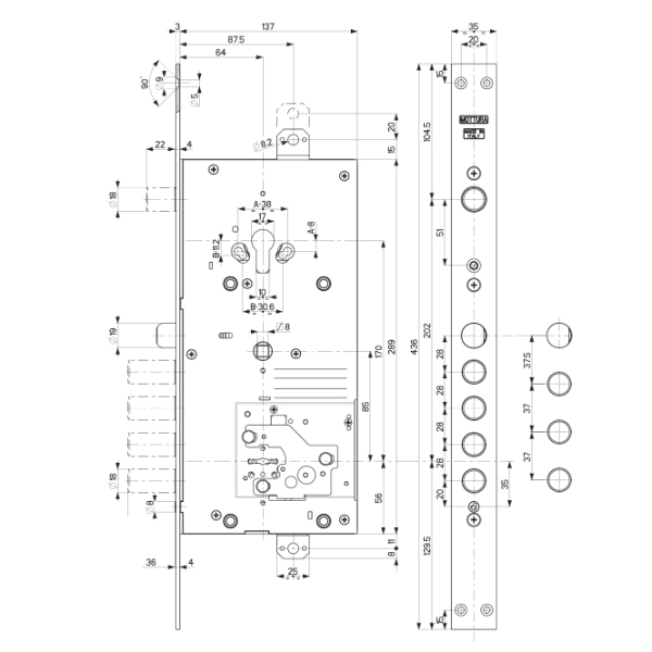 Опис Механізм замка MOTTURA 54.J939H8B05AC4O (BS67*85мм) ключ 40мм L лівий