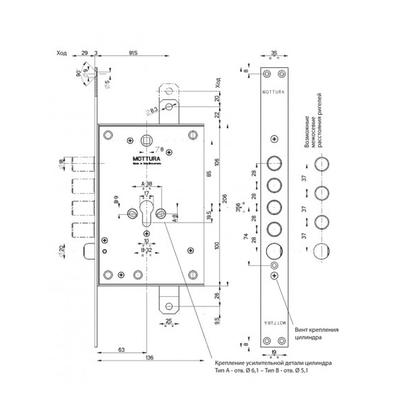 Опис Механізм замка MOTTURA 85.971S28T (BS66*85) L лівий