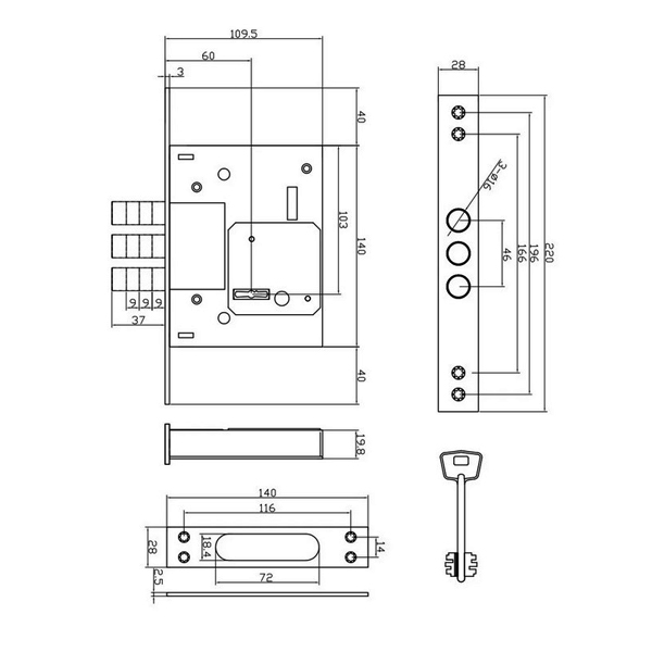 • Розміри замку – 140х110х20 мм