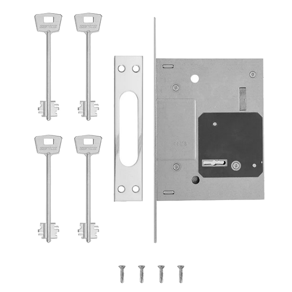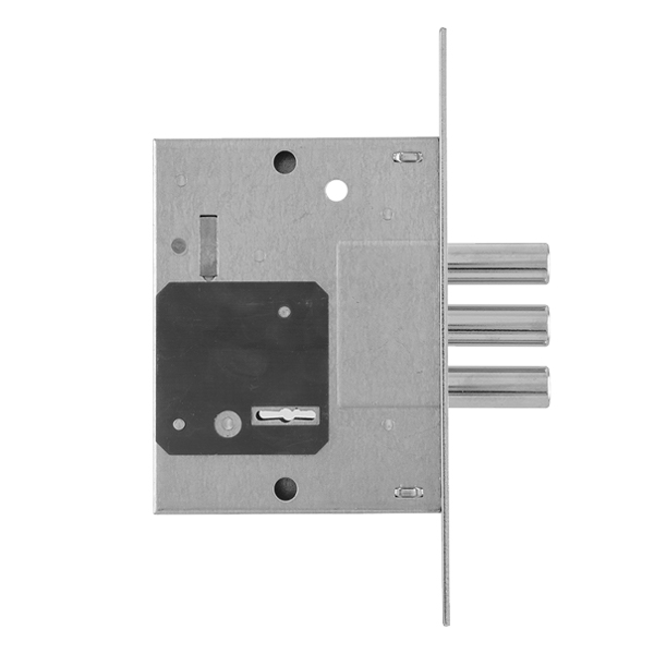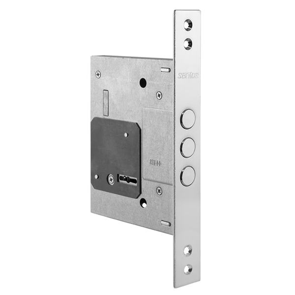 SANTOS 257L-NC – це 3-х ригельний врізний замок, який встановлюється на металеві та дерев’яні вхідні двері. У своєму складі не має язичка, тому використовується виключно як додатковий верхній замок.