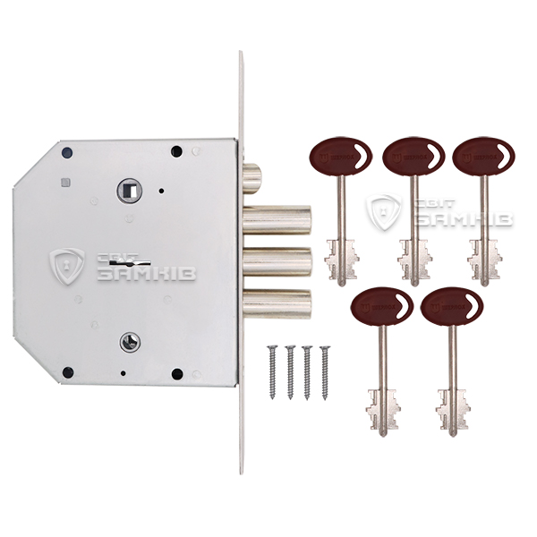 Після повного провертання ключа замикання відбувається 3-ма ригелями діаметром 18 мм з повним виходом 40 мм. Додатково з внутрішньої сторони замок може бути закритий як на нічну засувку, так і на ключ. Її вихід становить 25 м. В комплекті 5 ключів.