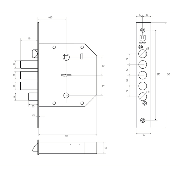 Механізм замка HORST HR-06S (BS66,5*42мм) правий