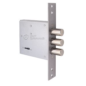 Закривання здійснюється 3-ма ригелями зі сталі діаметром 15,8 мм. Вони надійно фіксують двері, забезпечуючи достатній рівень безпеки. Повний вихід становить 26 мм. Даний замок ідеально підходить для встановлення в якості додаткового замка в металеві або дерев’яні двері квартир, будинків, гаражів чи комерційних приміщень. В даній версії в комплектації 5 ключів.