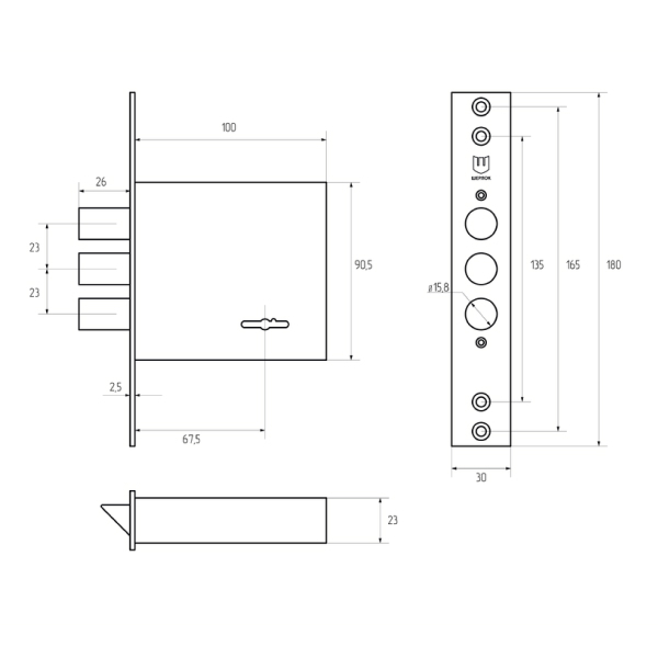• Розміри замка –  100х90,5х23 мм.