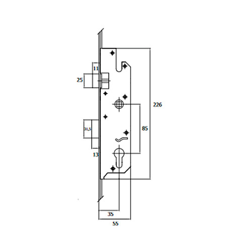 Механізм замка CISA 44661.30.0.20 язичок (BS30*85мм, 22 мм) нержавіюча сталь