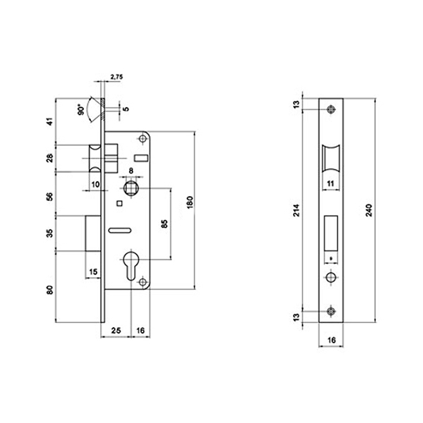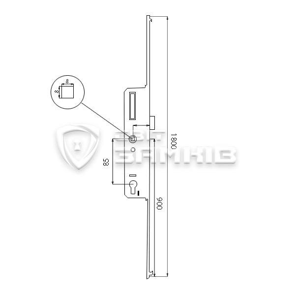 Опис Механізм замка VORNE заскочка 25*85 мм рейка 1800 мм з ригелем