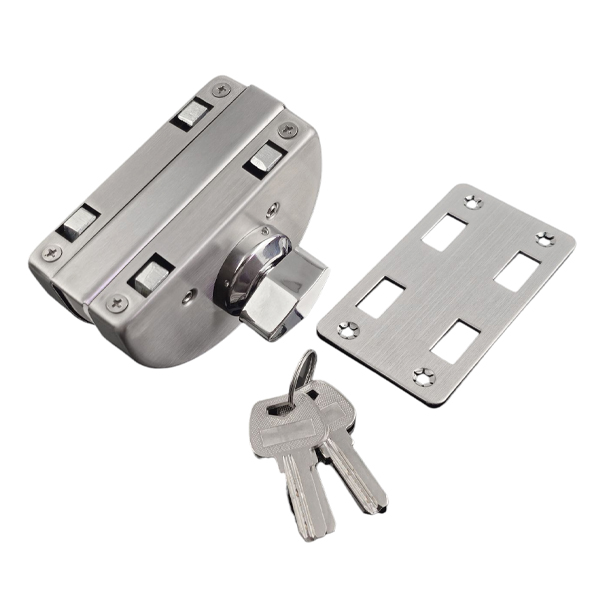 Матеріал виготовлення – нержавіюча сталь SS 304. Це міцний та довговічний матеріал, який захищає поверхню від утворення іржі та корозії. Тому замки з нержавіючої сталі можна спокійно ставити у приміщеннях з підвищеною вологістю (ванна кімната або на вулиці). Монтаж данного типу замку відбувається дуже легко. Подвійний корпус дозволяє надійно затиснути між собою скло товщиною 8 мм. Це дуже зручно та практично, і не потребує свердління отворів у полотні.