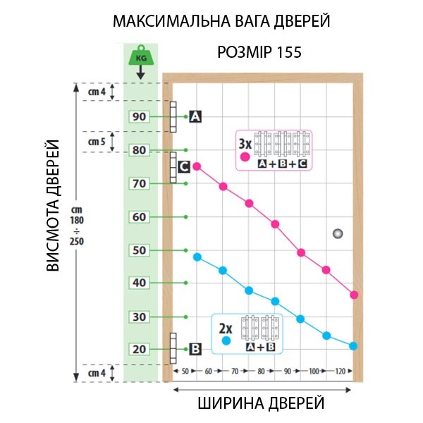 • Максимальне навантаження на 2 завіса – 49 кг, на 3 – 75 кг.