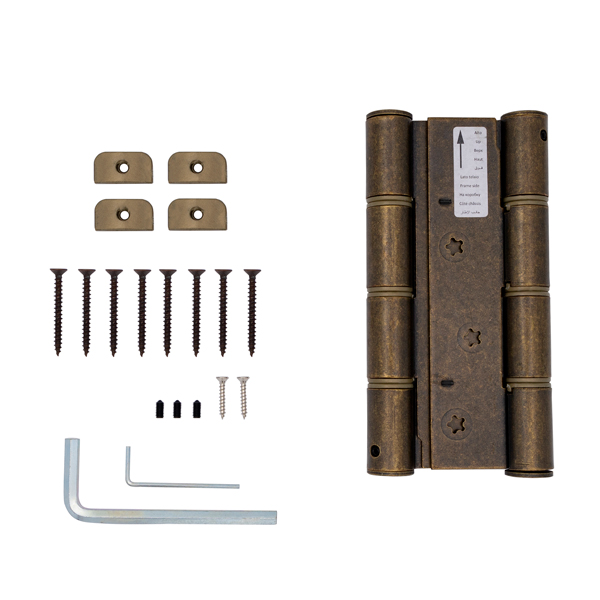 Особливістю цієї моделі є можливість регулювання пружини з нержавіючої сталі, що дозволить налаштувати закривання максимально індивідуально. Це забезпечить затримку руху перед відкриттям або закриттям, а також зменшить коливання дверей. В кольорі "антична латунь" найкраще буде доповнювати двері відповідних відтінків.