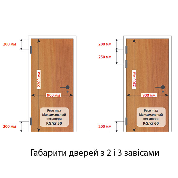 • Максимальна висота дверей – 2200 мм.