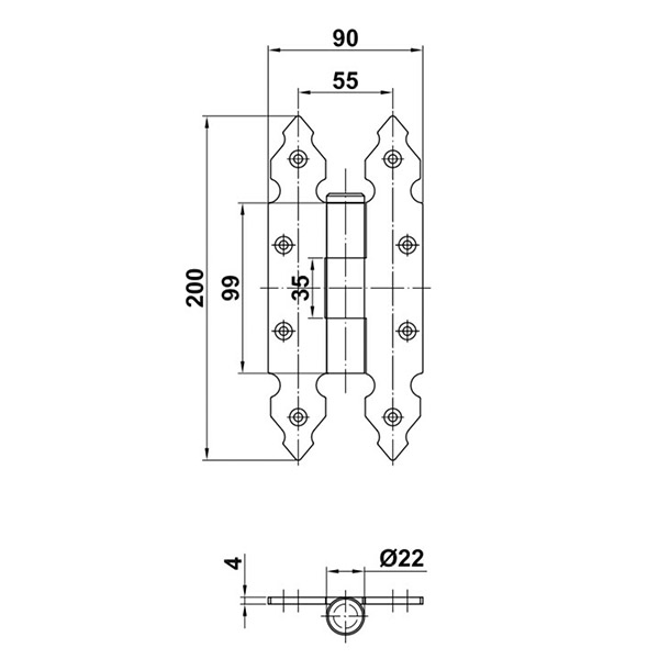 Завіс AMIG мод.9100 – це декоративна петля, головною фішкою якої є відповідний дизайн. Вона стане особливою довершуючою прикрасою Вашого бачення стилю. Насамперед буде вдалим рішенням в приміщенням із стилем LOFT чи в тематичних закладах, де подібна петля буде одним із елементів загального дизайнерського образу. Цьому також сприятиме те, що петля покрита чорною фарбою на епоксидній основі. В даний час це є один із трендів дверної фурнітури. Має розмір 200х90 мм при товщині 4 мм, що дозволяє використовувати її з досить важкими дверями та конструкціями. Завіс виготовлений із сталі. Завдяки цьому буде служити довгий час. Монтується досить просто шляхом накладення на дверне полотно.