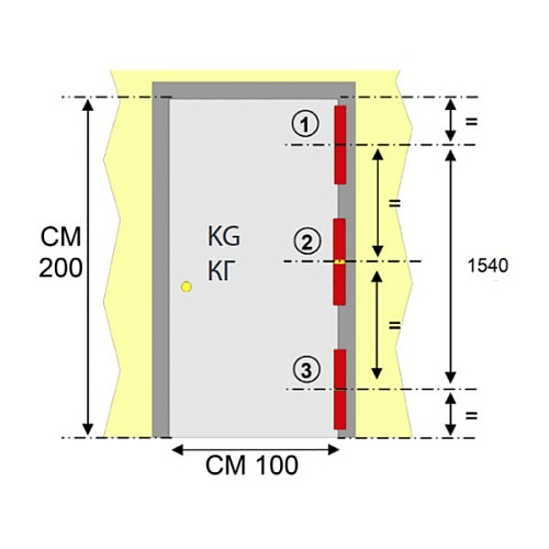 Петля підійде для полотен з максимальною шириною 1000 мм та висотою 2000 мм. Максимальне навантаження на 2 завіса становить 70 кг, на 3 – 90 кг.