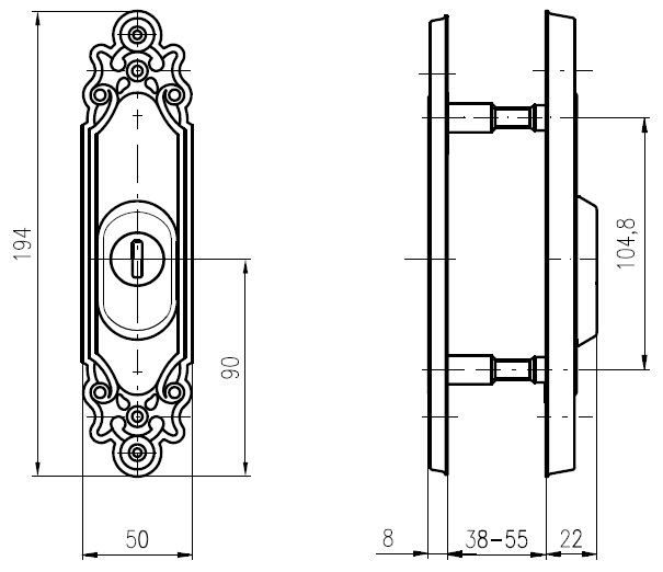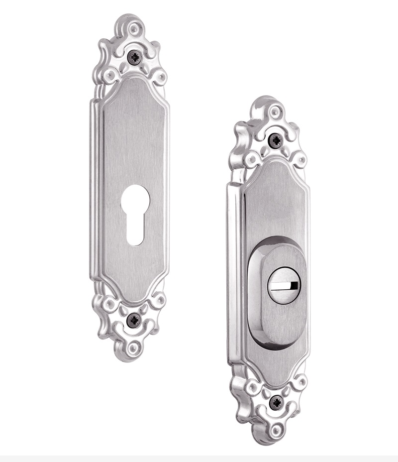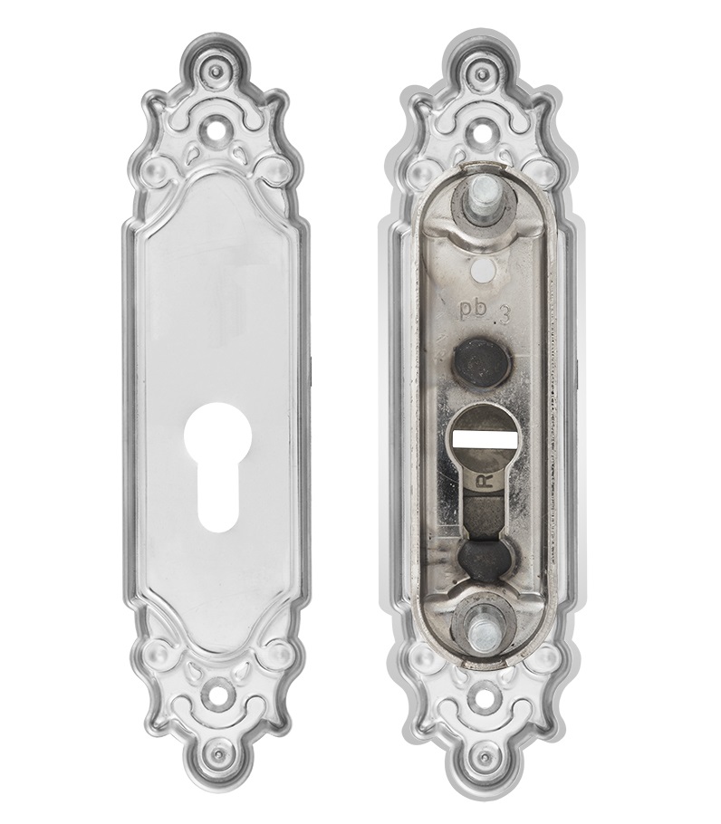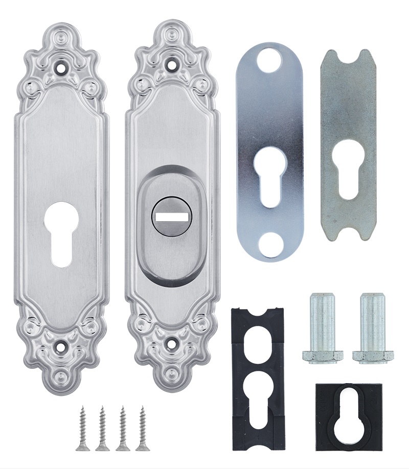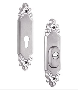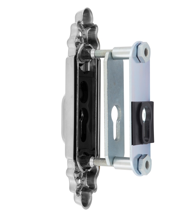 Защитная дверная фурнитура чешского производителя ROSTEX уже давно завоевала благосклонность у владельцев квартир, домов и коммерческих помещений. Обязательным аксессуаром входных дверей для защиты Вашего дома является протектор (или броненакладка). Поскольку их слабой точкой считается замок с сердцевиной, то очень часто преступники пытаются попасть внутрь помещения просто вырывая их. Для противодействия такому методу взлома и нужна броненакладка. Данная модель ROSTEX Ozdobna R3 устанавливается на входные металлические и деревянные двери вместе с дополнительным замком и сердцевиной стандарта EURO DIN. По дизайну и цвету соответствует аналогичной модели ручек на планке. Это защитный протектор с 3-м классом взломостойкости. Изготовлен из нержавеющей стали, поэтому может использоваться в уличных условиях. Монтируется накладным методом. Однако крепление не стандартное горизонтальное, а вертикальное. Это требует меньшего по размеру дополнительного замка для того, чтобы закрутить через него стяжные винты М8. Их длина позволяет ставить броненакладку на дверные полотна толщиной от 38 до 55 мм. Есть дополнительная возможность продления до 100 мм. Эти цифры указаны с учетом того, что винты закручены на всю длину крепежного отверстия. Таким образом, протектор защищает сердцевину от физических и силовых методов взлома - сверления и выбивания. Особенностью этой модели является наличие внутри усиленной стальной пластины, которая создает дополнительную защиту корпуса замка. При этом тонкий корпус позволяет монтировать данную броненакладку на дополнительные замки с бексетом от 30 мм. Высота (или толщина) протектора составляет 22 мм. Данная модель выполнена в интересной авангардной обработке в матовом хромированном цвете, поэтому особенно удачно дополнит соответствующий дизайн помещения и двери светлых оттенков - тепло-серых до бежевых.
