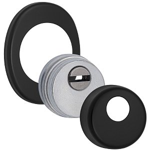 Для монтажа по диаметру протектора производится отверстие в дверном полотне. Крепится вокруг сердцевины стяжными винтами M6x40 мм, создавая монолитную конструкцию с ней. Винты изготовлены из специальной стали, которая помогает выдержать силу погрузки > 2300 кг на один винт. Таким образом, протектор защищает сердцевину вместе с точкой крепления в дверях от физических и силовых методов взлома – сверление, выламывание и выбивание. Доступа к винтам крепления нет, поэтому сорвать саму броненакладку очень сложно. Высота (или толщина) составляет 25 мм, диаметр – 50 мм. В цвете "черный матовый" лучше всего будет дополнять двери светлых оттенков.