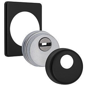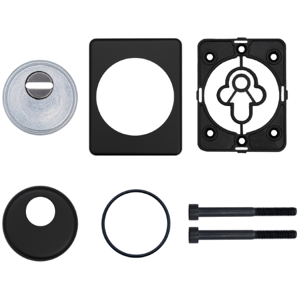 Для монтажа по диаметру протектора производится отверстие в дверном полотне. Крепится вокруг сердцевины стяжными винтами M6x40 мм, создавая монолитную конструкцию с ней. Винты изготовлены из специальной стали, которая помогает выдержать силу погрузки > 2300 кг на один винт. Таким образом, протектор защищает сердцевину вместе с точкой крепления в дверях от физических и силовых методов взлома – сверление, выламывание и выбивание. Доступа к винтам крепления нет, поэтому сорвать саму броненакладку очень сложно. Высота (или толщина) составляет 25 мм, диаметр – 50 мм. В цвете "черный матовый" лучше всего будет дополнять двери темных оттенков.