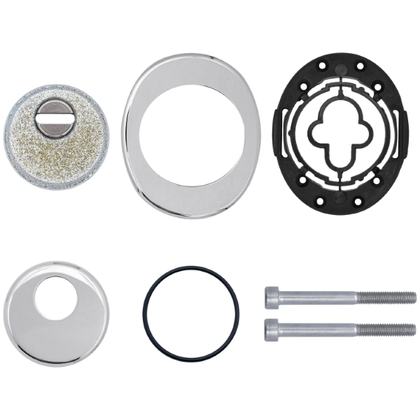 Для монтажа по диаметру протектора производится отверстие в дверном полотне. Крепится вокруг сердцевины стяжными винтами M6x40 мм, создавая монолитную конструкцию с ней. Винты изготовлены из специальной стали, которая помогает выдержать силу погрузки > 2300 кг на один винт. Таким образом, протектор защищает сердцевину вместе с точкой крепления в дверях от физических и силовых методов взлома – сверление, выламывание и выбивание. Доступа к винтам крепления нет, поэтому сорвать саму броненакладку очень сложно. Высота (или толщина) составляет 25 мм, диаметр – 50 мм. В цвете "хром полированный" лучше всего будет дополнять двери светлых оттенков.