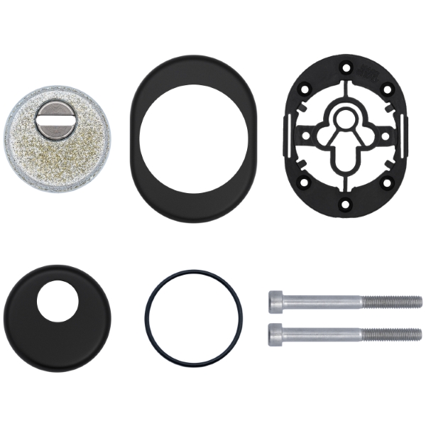 Для монтажа по диаметру протектора производится отверстие в дверном полотне. Крепится вокруг сердцевины стяжными винтами M6x40 мм, создавая монолитную конструкцию с ней. Винты изготовлены из специальной стали, которая помогает выдержать силу погрузки > 2300 кг на один винт. Таким образом, протектор защищает сердцевину вместе с точкой крепления в дверях от физических и силовых методов взлома – сверление, выламывание и выбивание. Доступа к винтам крепления нет, поэтому сорвать саму броненакладку очень сложно. Высота (или толщина) составляет 25 мм, диаметр – 50 мм. В цвете "черный матовый" лучше всего будет дополнять двери темных оттенков.