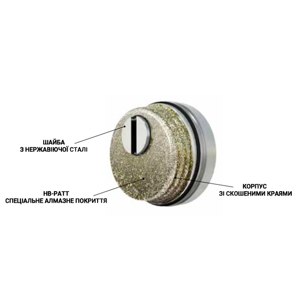 Протектор Antitubo 25 мм ME50 состоит из тела (или основания), крышки и наружной накладки. Тело протектора изготовлено из карбонитрованной стали (закаленной) и шайбы из нержавеющей стали. Благодаря высокой степени жесткости (до ~8400 HV) металл "гасит" инструмент и не дает ему высверлить или выбить основание.