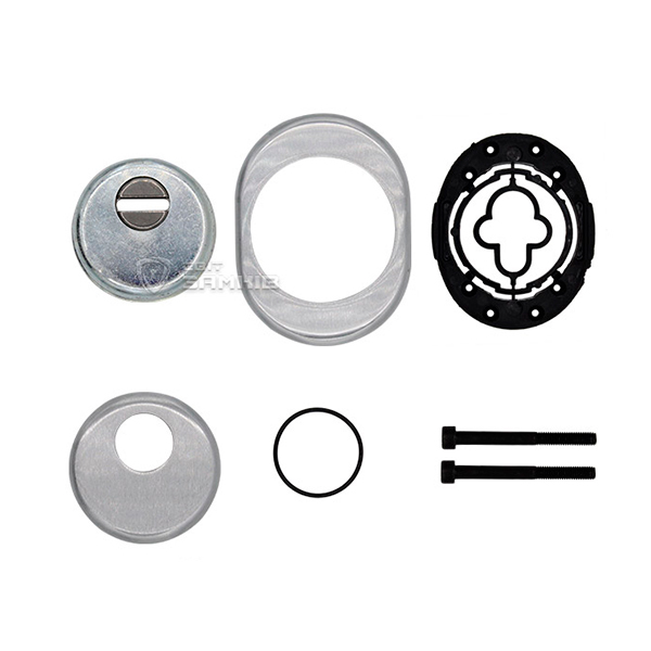 Для монтажа по его диаметру делается отверстие в дверном полотне. Крепится вокруг сердцевины стяжными винтами, создавая монолитную конструкцию с ней. Таким образом, протектор защищает ее вместе с точкой крепления в дверях от физических и силовых методов взлома - сверления, взлома и выбивания. Доступа к винтам крепления нет и сорвать саму броненакладку чрезвычайно сложно. Высота (или толщина) ее составляет 25/33/42 мм, диаметр - 50 мм. В цвете "матовый хром" лучше будет дополнять двери светлых оттенков - от тепло-серых до бежевых.