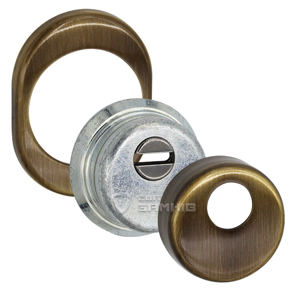 Для монтажа по диаметру протектора делается отверстие в дверном полотне. Крепится вокруг сердцевины стяжными винтами, создавая монолитную конструкцию с ней. Таким образом, протектор защищает ее вместе с точкой крепления в дверях от физических и силовых методов взлома - сверления, взлома и выбивания. Доступа к винтам крепления нет и сорвать саму броненакладку чрезвычайно сложно. Высота (или толщина) ее составляет 25 мм, диаметр - 50 мм. В бронзовом цвете лучше будет дополнять двери с пыльно-землистой палитры.