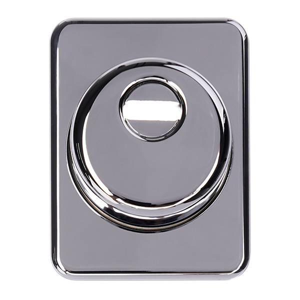 Высота (или толщина) протектора составляет 25 мм, диаметр – 50 мм. Комплектуется наружной декоративной накладкой прямоугольной формы для придания дверному полотну более опрятного вида. В цвете "хром" лучше всего будет дополнять двери соответствующих серых оттенков.