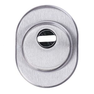 Высота (или толщина) протектора составляет 25 мм, диаметр – 50 мм. Комплектуется наружной декоративной накладкой овальной формы для придания дверному полотну более опрятного вида. В цвете "хром матовый" лучше всего будет дополнять двери соответствующих серых оттенков.