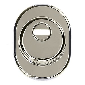 Высота (или толщина) протектора составляет 25 мм, диаметр – 50 мм. Комплектуется наружной декоративной накладкой овальной формы для придания дверному полотну более опрятного вида. В цвете "никель матовый" лучше всего будет дополнять двери соответствующих серых оттенков.