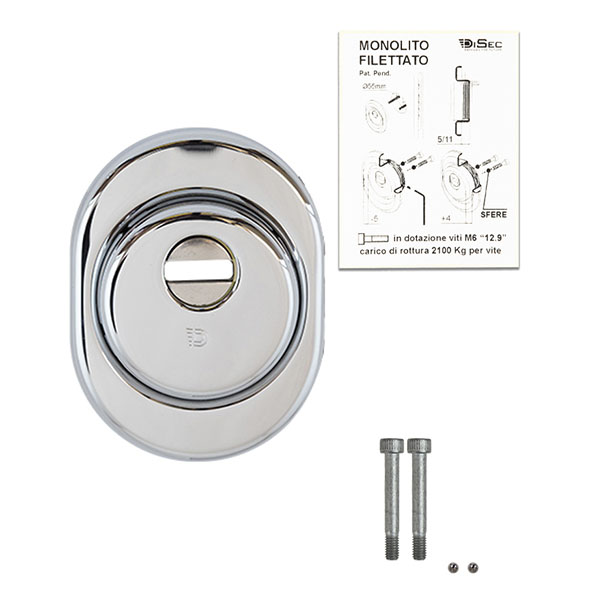 Данная модель DISEC MONOLITO BD250 устанавливается на входную дверь вместе с замками и сердцевинами стандарта EURO DIN. Это защитный закаленный протектор с 3-м классом взломостойкости. Для защиты от сверления и использования фрезы диск в корпусе изготовлен из марганцевой стали, а лицевая сторона имеет рифленую поверхность. Также установленные специальные штифты из вольфрамового карбида, которые служат для препятствования фрезерованию. Броненакладка изготовлена ​​из каленой стали.