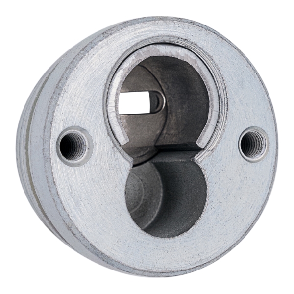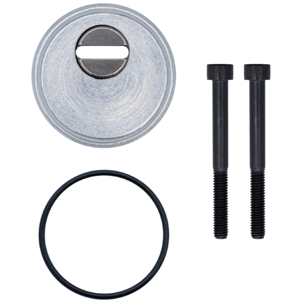 Для монтажа по диаметру тела протектора производится отверстие в дверном полотне. Крепится вокруг сердцевины стяжными винтами M6x40 мм, создавая монолитную конструкцию с ней. Винты изготовлены из специальной стали, которая помогает выдержать силу погрузки > 2 300 кг на один винт.  Таким образом, протектор защищает сердцевину вместе с точкой крепления в дверях от физических и силовых методов взлома. Доступа к винтам крепления нет и сорвать саму броненакладку очень сложно. Высота (или толщина) составляет 25 мм, диаметр – 50 мм.