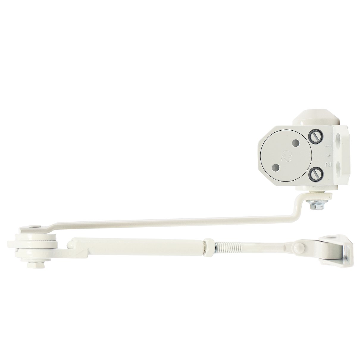 В данной модификации доводчик оснащен стандартной тягой с возможностью фиксации двери в открытом положении, начиная с угла 80°. Такая функция пригодится для удобного проветривания помещения или облегчения доступа в коммерческих и общественных объектах. Белый цвет корпуса гармонично дополнит дверь соответствующих оттенков, обеспечивая стильный вид и незаметность.